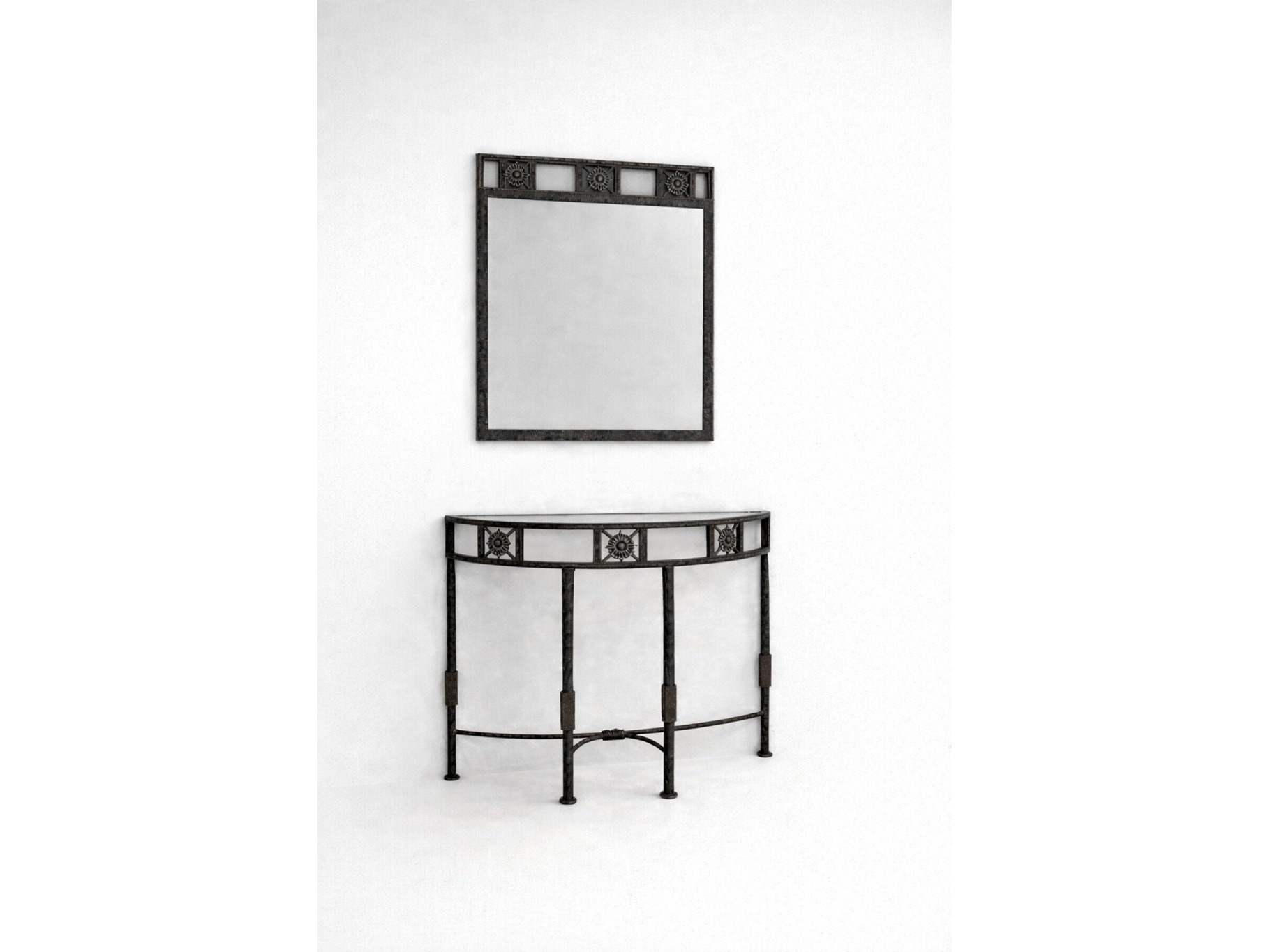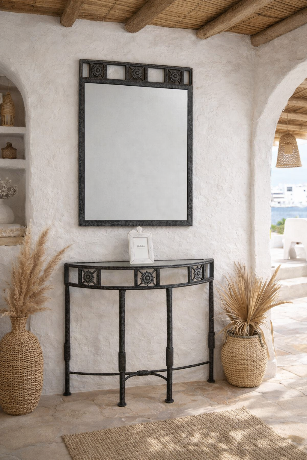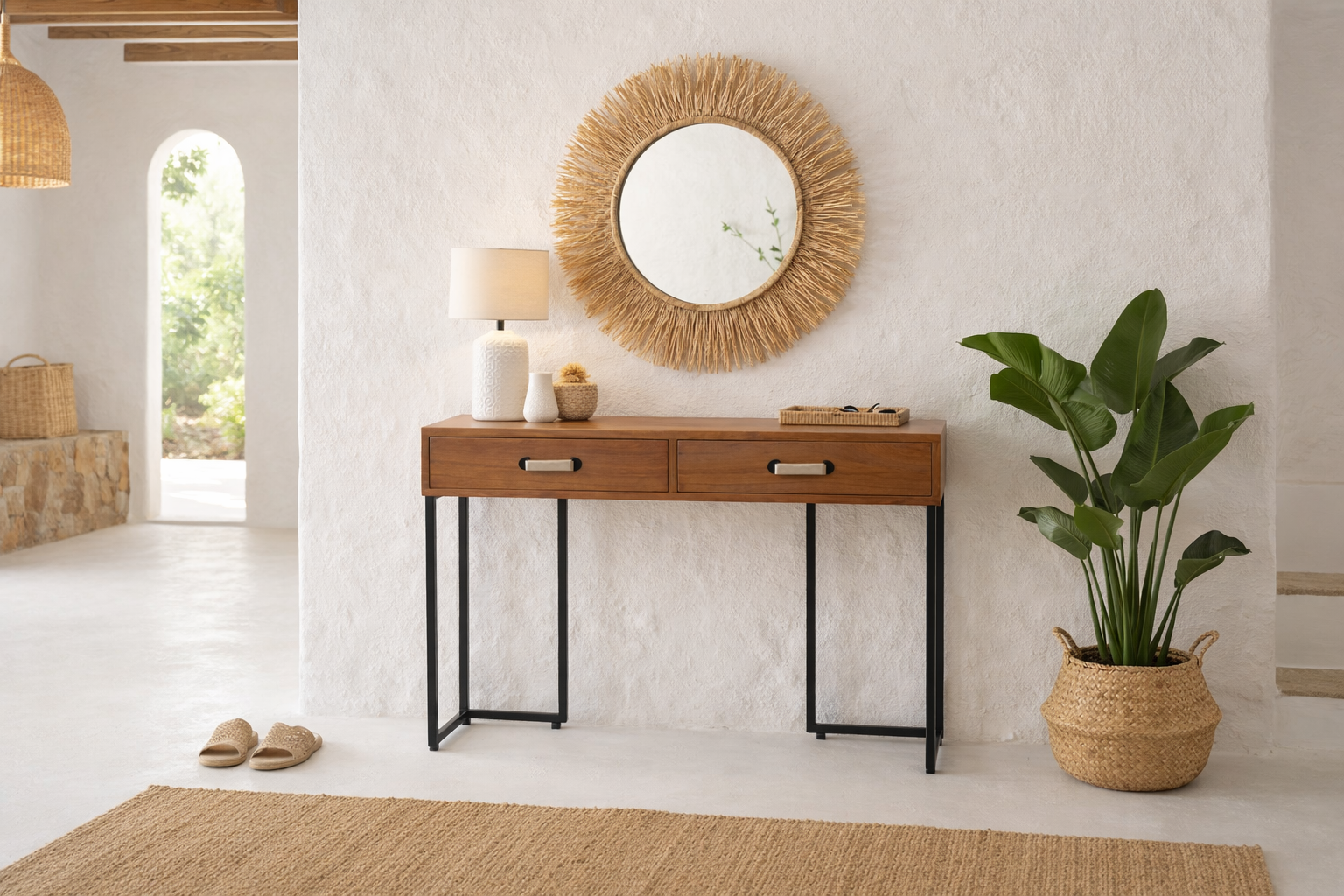 consola de madera con 2 cajones y estructura de forja negra estilo industrial
