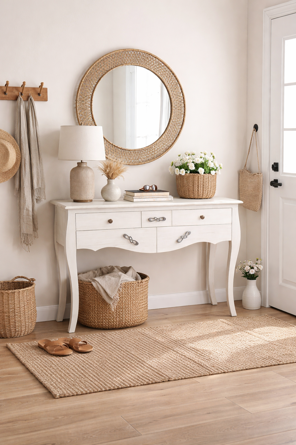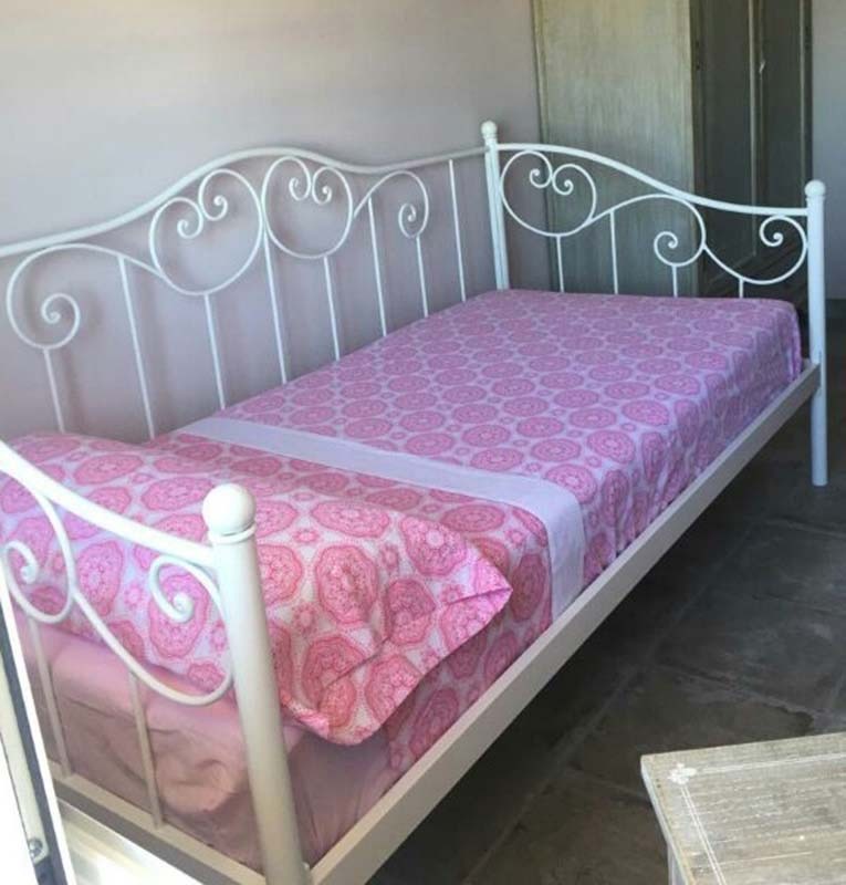 Sofá cama de forja blanca con cojines beige estilo vintage romántico