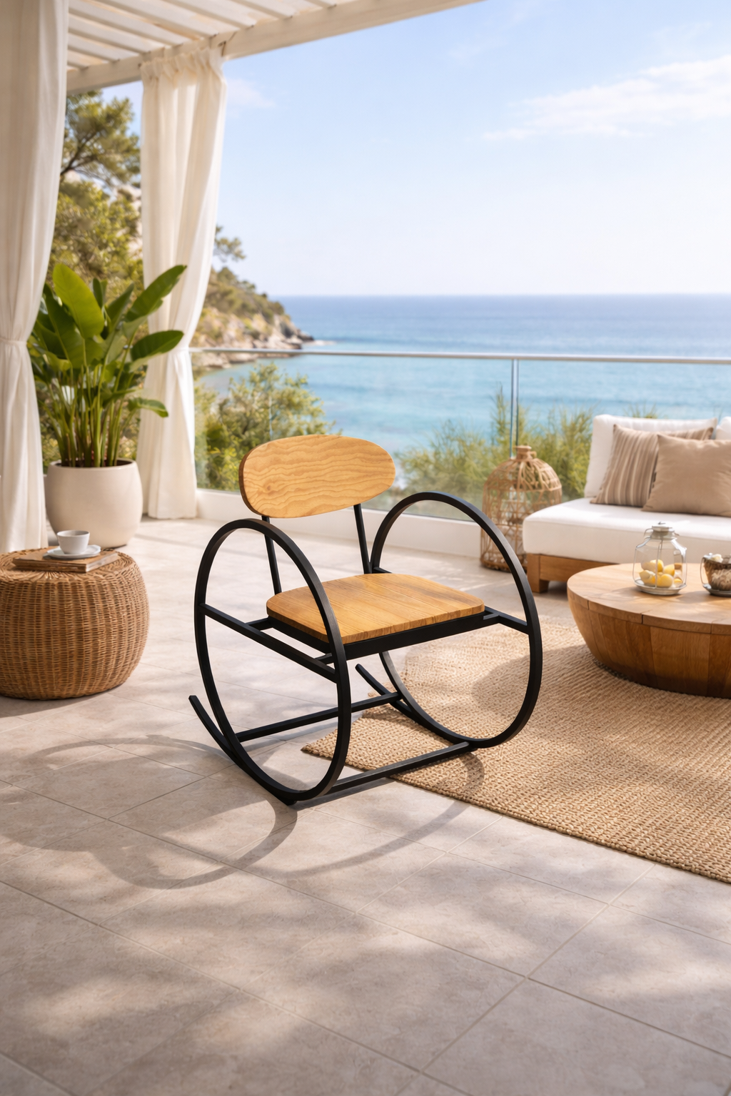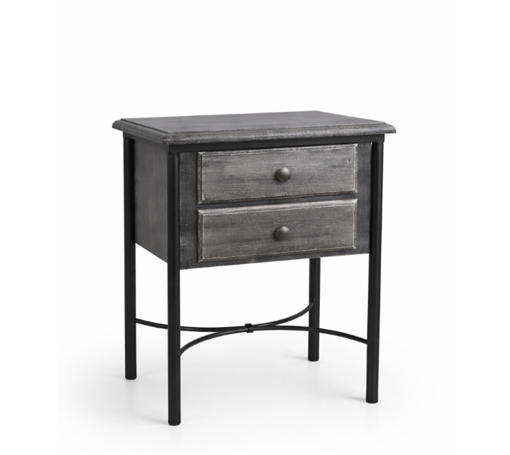 mesita de forja y madera con 1 cajón y patas metálicas negras estilo industrial
