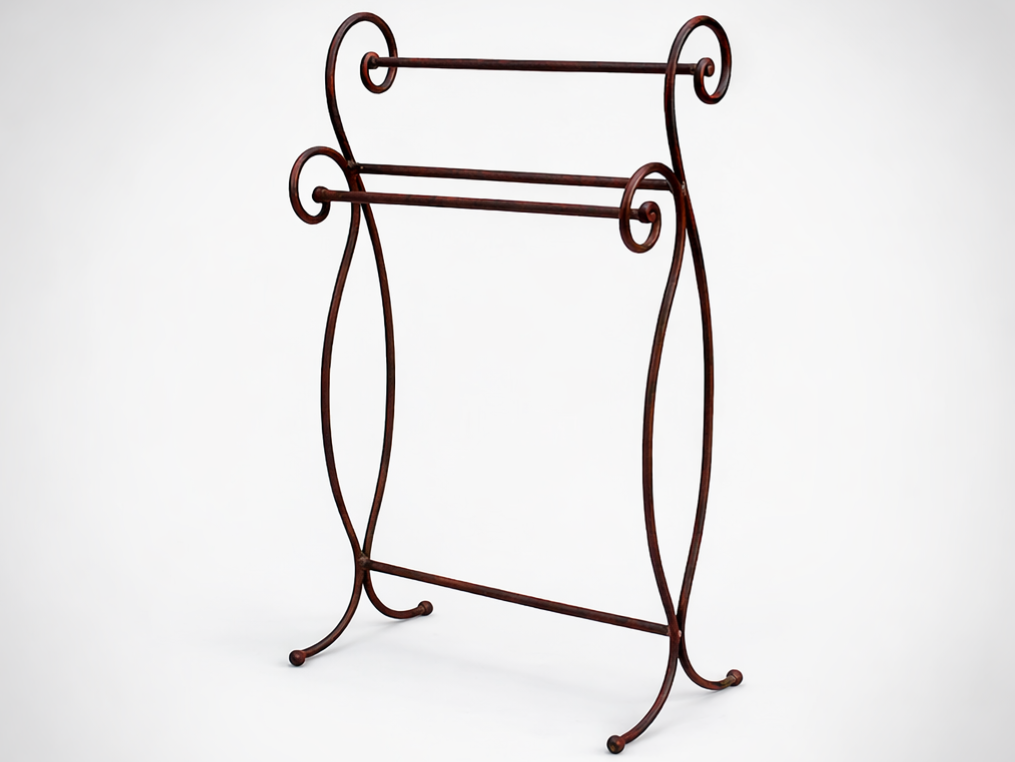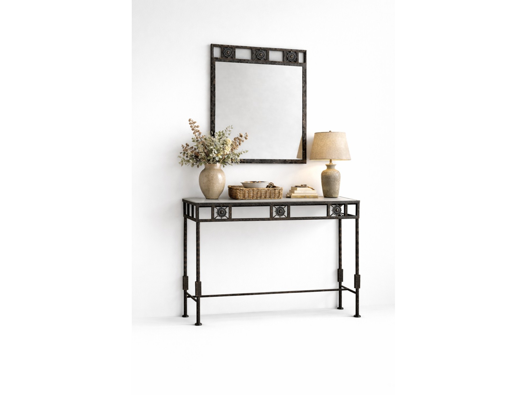 Estructura de mesa rectangular de hierro color crema modelo Damasco con patas curvas y detalles decorativos de forja.